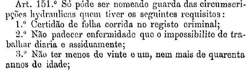 A carreira de guarda-rios surge com um decreto real de D. Carlos I, que, a 19 de dezembro de 1892, aprova o Regulamento para os Serviços Hidráulicos, entidade inserida no Ministério das Obras Públicas. Entre outras disposições, o regulamento define a orgânica dos Serviços, composta por engenheiros, condutores e desenhadores (semelhantes aos profissionais das obras públicas e das minas), e outros novos, como os mestres de valas e os guarda-rios. Estes últimos eram contratados através de procedimento concursal com uma mão cheia de requisitos: ter entre 21 e 40 anos de idade, saber ler e escrever, não ter registo criminal nem “padecer enfermidade que o impossibilite de trabalhar diária e assiduamente”, ter trabalhado previamente em obras de serviços agrícolas ou hidráulicos e não ter um estabelecimento de venda no lanço a que pertencer o cantão que lhe for confiado. Dava-se preferência a quem tivesse tido carreira militar. Como agentes fiscalizadores, os mestres e guardas prestavam juramento perante um juiz.