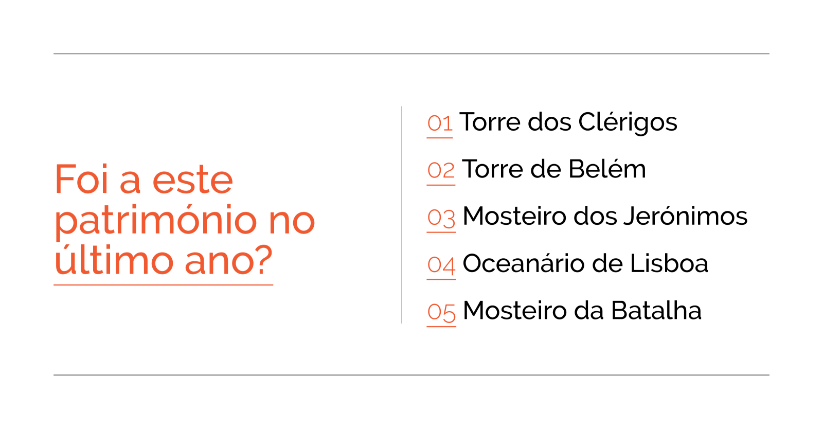 Como posso apoiar a cultura na minha região? Quantos portugueses conhecem a minha cidade? Como posso atrair mais público para o meu espaço cultural? Qual o tipo de consumo cultural dos jovens? Como devo pensar na política de preços para as minhas iniciativas? Quais são as marcas que mais investem em cultura? Qual a importância da cultura na vida das pessoas?