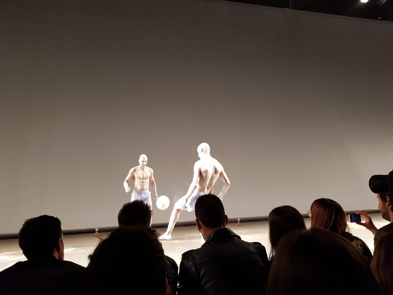 Jornalistas, fotógrafos, amantes de moda e curiosos ocupam os seus lugares. As luzes baixam e a música épica enche a passerelle. Iria começar mais um desfile, desta vez o de Nuno Gama. Ao fundo vemos personificações de estátuas brancas que se alinham com a plateia, fitando-a. De bastão elevado ali ficam enquanto outros manequins exibem camisas penduradas numa vara branca. Por entre luzes azuladas, todos se retiram da passerelle e começa o mostruário do trabalho do estilista. Todos os modelos estavam cobertos a tinta branca, que era a cor predominante das vestes que exibiam. “Of your glass hands carried” é a frase exibida na parede. Dois modelos param e colocam-se costas contra costas. Eis que começam a fazer acrobacias, tudo enquanto outros continuam a desfilar. Rodas, piruetas e saltos passaram a surpreender a audiência durante o desfile. Nunca se sabia quem iria recomeçar a corrente. Eis que dois modelos entram a jogar à bola. Que mais faltava para quebrar todos os pressupostos do que é um desfile de moda? A estrutura final em que, guiados por um guitarrista, os modelos se estratificam numa configuração heroica que ocupa toda a passerelle. Nuno Gama atravessa-os, uns em pé, outros de joelhos, e cumprimenta-nos.