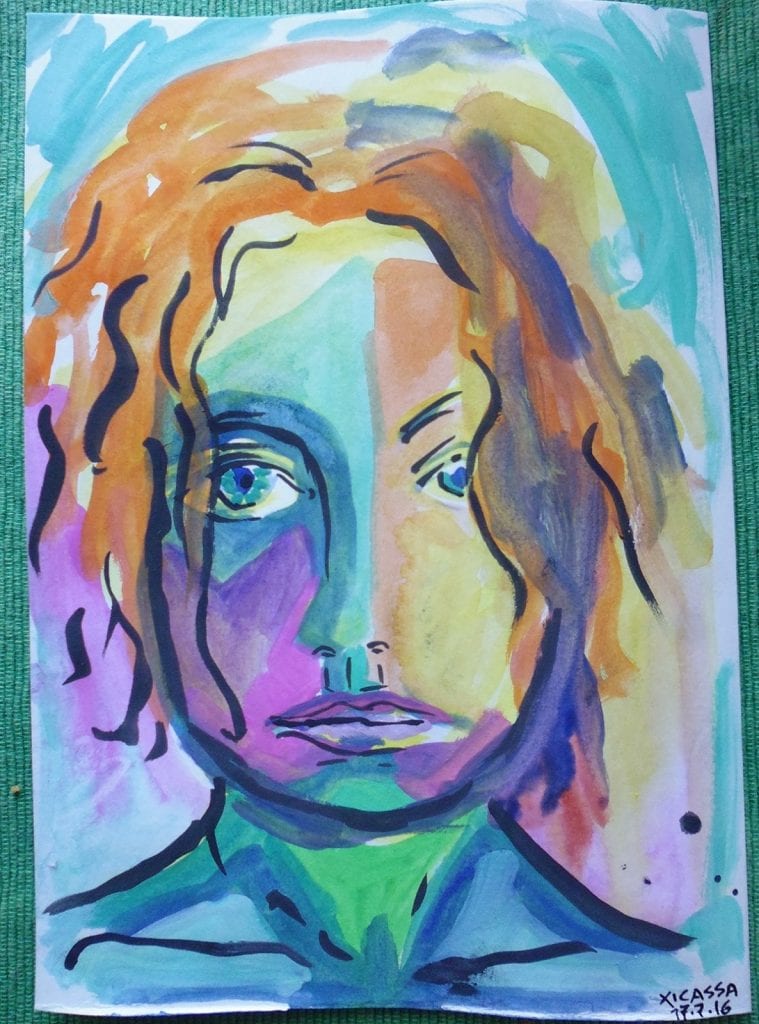 X. – Comecei a levar um banco e os retratos que tinha feito a alguns amigos. Ficava sentada virada para o rio, sempre no mesmo banco. E as pessoas vinham e perguntavam. Sentavam-se e eu retratava. Foram seis meses, todos os dias, o dia inteiro. E foi extremamente espiritual. Uma viagem. Sem sair do lugar. Estava ali num estado de meditação, e, de repente, alguém vem e senta-se à tua frente. E dá mesmo a sensação de que é uma resposta a alguma pergunta. É sempre um ponto de encontro entre almas que buscam algo. Porque estamos sempre em comunicação, os nossos corpos estão sempre a comunicar uns com os outros. Não digo à pessoa que fique calada a olhar para mim, como é suposto. Deixo que se sinta livre. Às vezes surgia uma conversa, a minha mente ficava ocupada nisso, mas a minha mão ia sozinha. O processo de saber olhar, captar a pessoa. Olhares para o papel e veres a cara no papel e só passares por cima… é magnífico. É engraçado ver como o desenho, as cores, mudam conforme o estado da pessoa. Na Faculdade de Belas-Artes, havia problemas com os professores porque eu trocava as cores. Pediam-me para pintar uma pedra e pintava de amarelo, ou azul, ou verde. Não pintava as coisas como são, mas como as sentia. Intuitivo. Poder fazer as coisas como eu sou e como eu sinto é a experiência. Em todos os planos. Comecei a ficar cada vez melhor, a fazer os desenhos em 10 minutos, com cor. Poder fazer uma coisa tão complexa – é muito mais do que um retrato, para mim – em 10 minutos é fascinante.