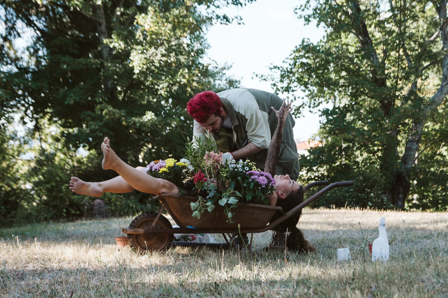 A tarde de sábado continua com uma visita às várias exposições presentes em diferentes espaços da cidade ao longo do fim-de-semana. Subimos de novo até ao Jardim do Paixotão, onde o público se senta na relva enquanto o artista Gonçalo Ramalho planta a sua parceira Sofia Miguel Castro num carrinho de mão, dispondo por cima do seu corpo coberto de terra um conjunto de flores que são distribuídas a quem delas queira cuidar no final da performance.