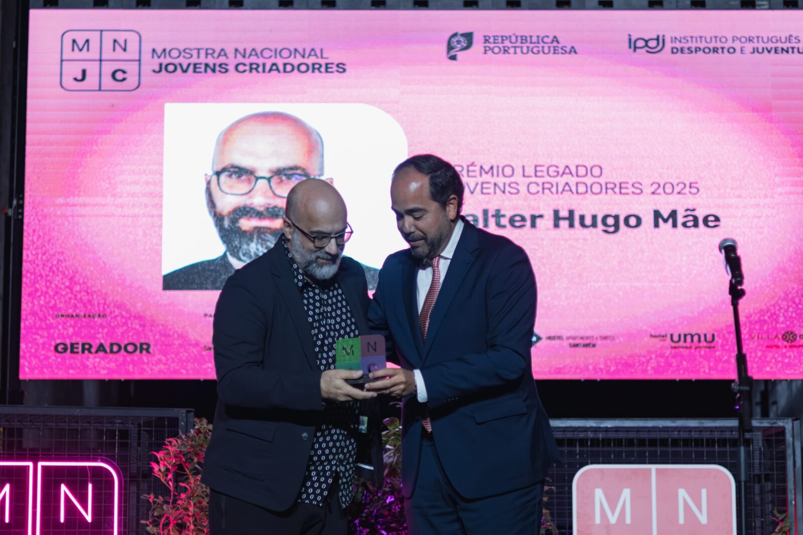 Valter Hugo Mãe, criador com destaque no panorama nacional e internacional, foi o autor premiado. Tendo passado pela Mostra Nacional Jovens Criadores no início do seu percurso artístico, o escritor construiu uma obra marcada por inquietação e sensibilidade.